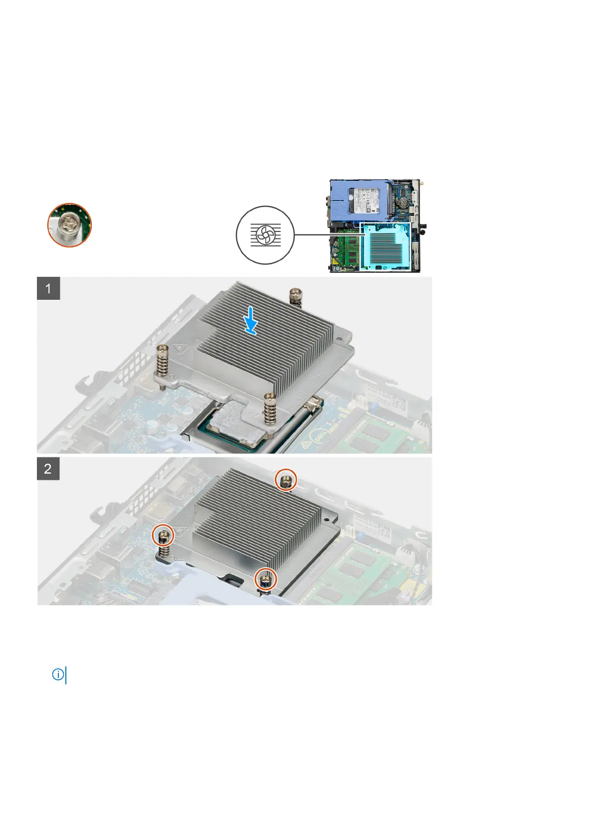 NOTE: Tighten the screws in a sequential order (1,2,3) as printed on the heat sink.