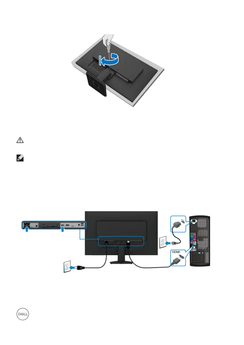 4. Tighten the screw on the monitor to ensure a secure attachment.