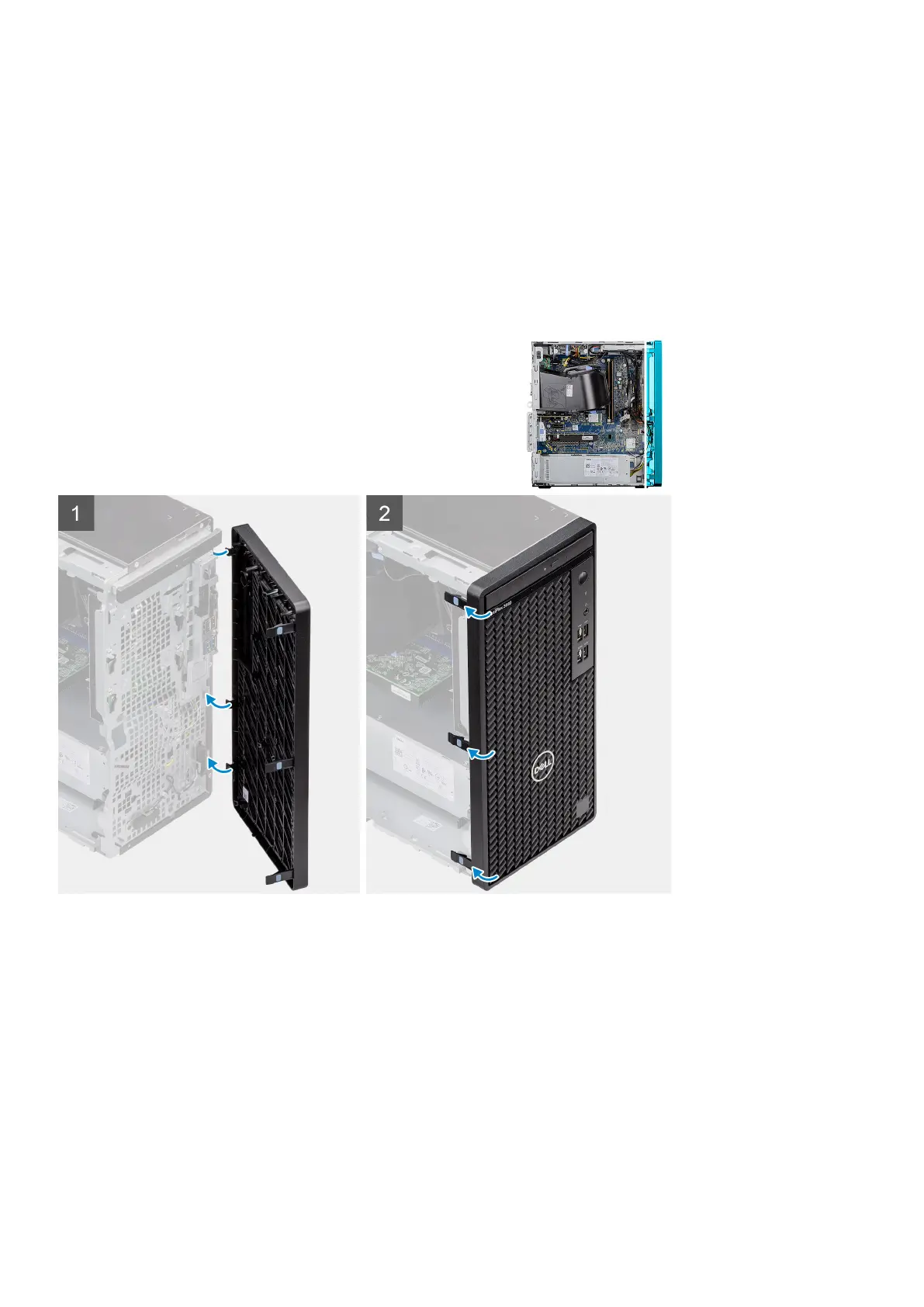 2. Slightly pull the front bezel and gently rotate to release the other tabs on the bezel from the slots in the computer chassis.