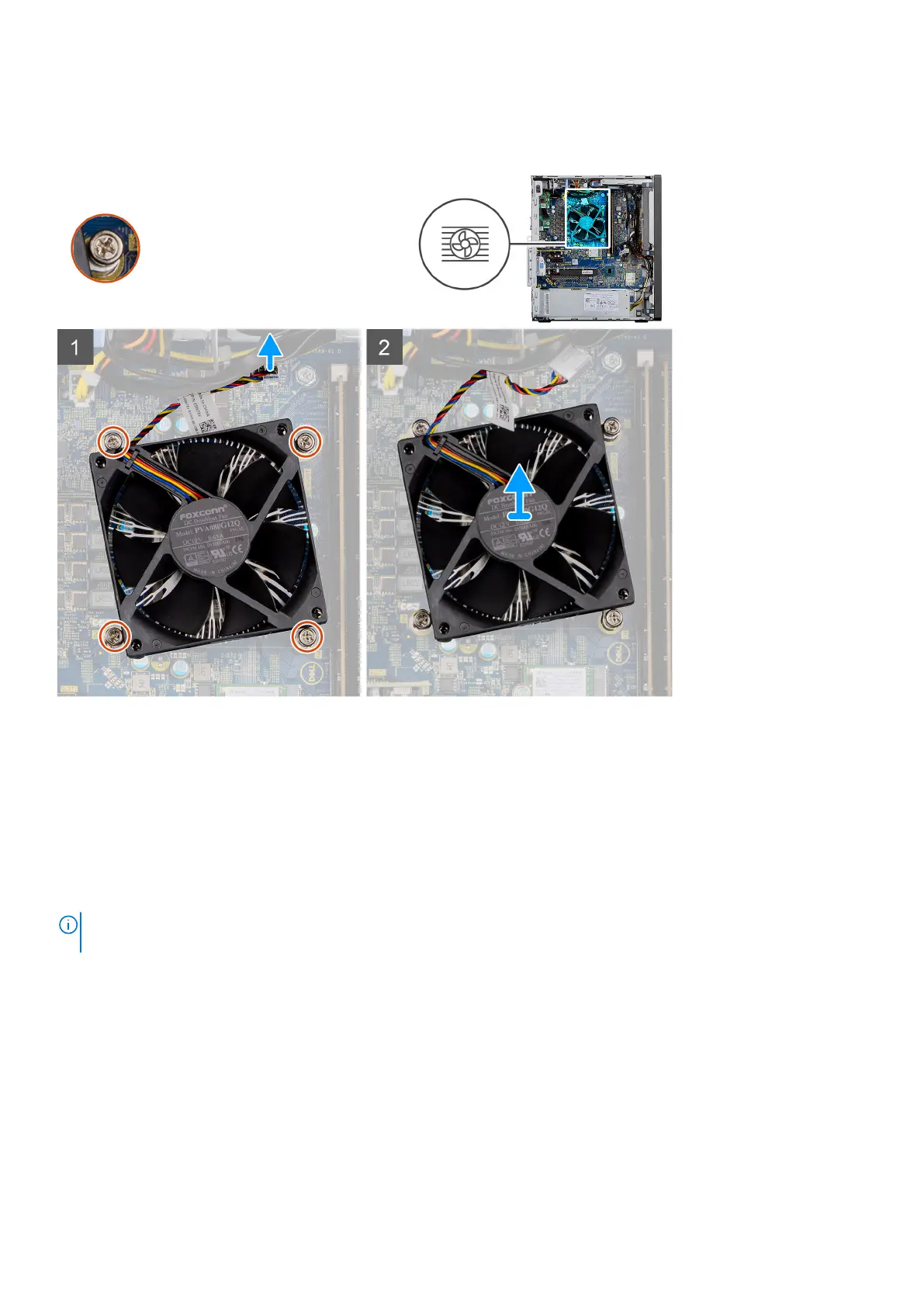 The following images indicate the location of the processor fan and heat-sink and provide a visual representation of the removal