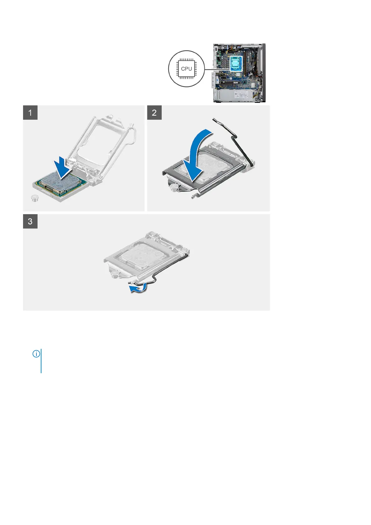 3. When the processor is fully seated in the socket, pivot the release-lever down and place it under the tab on the processor
