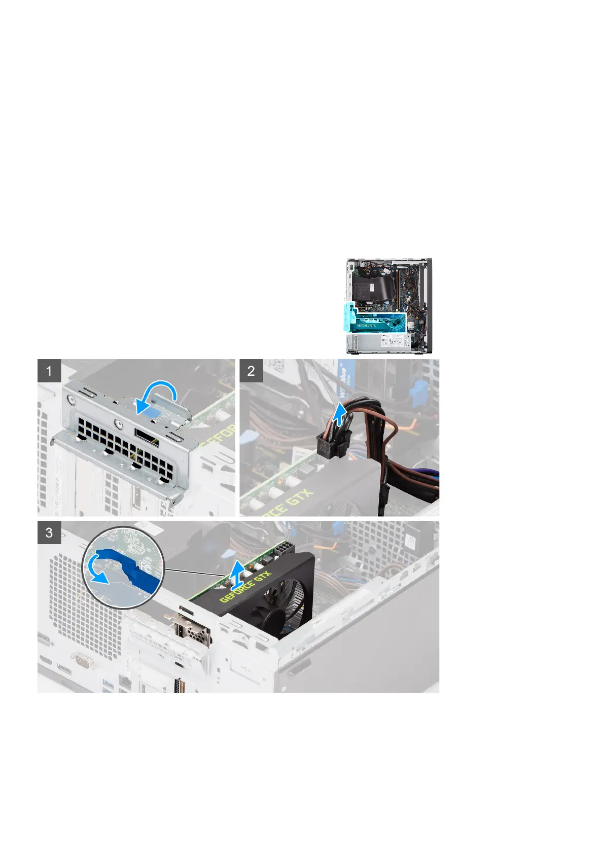 3. Push and hold the securing tab on the graphics-card slot and lift the powered GPU away from the graphics-card slot.