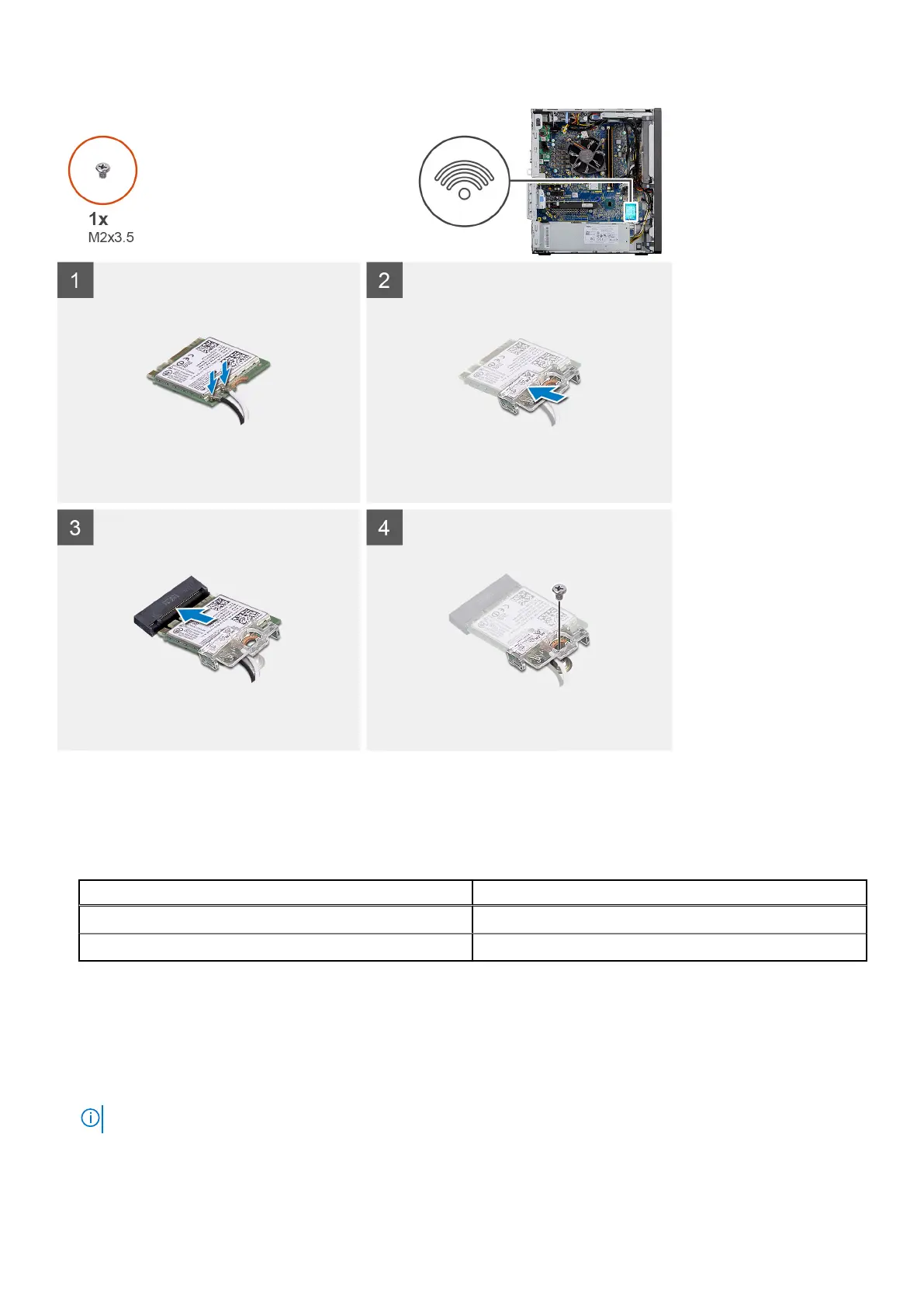 4. Replace the (M2x3.5) screw to secure the plastic tab to the WLAN card.