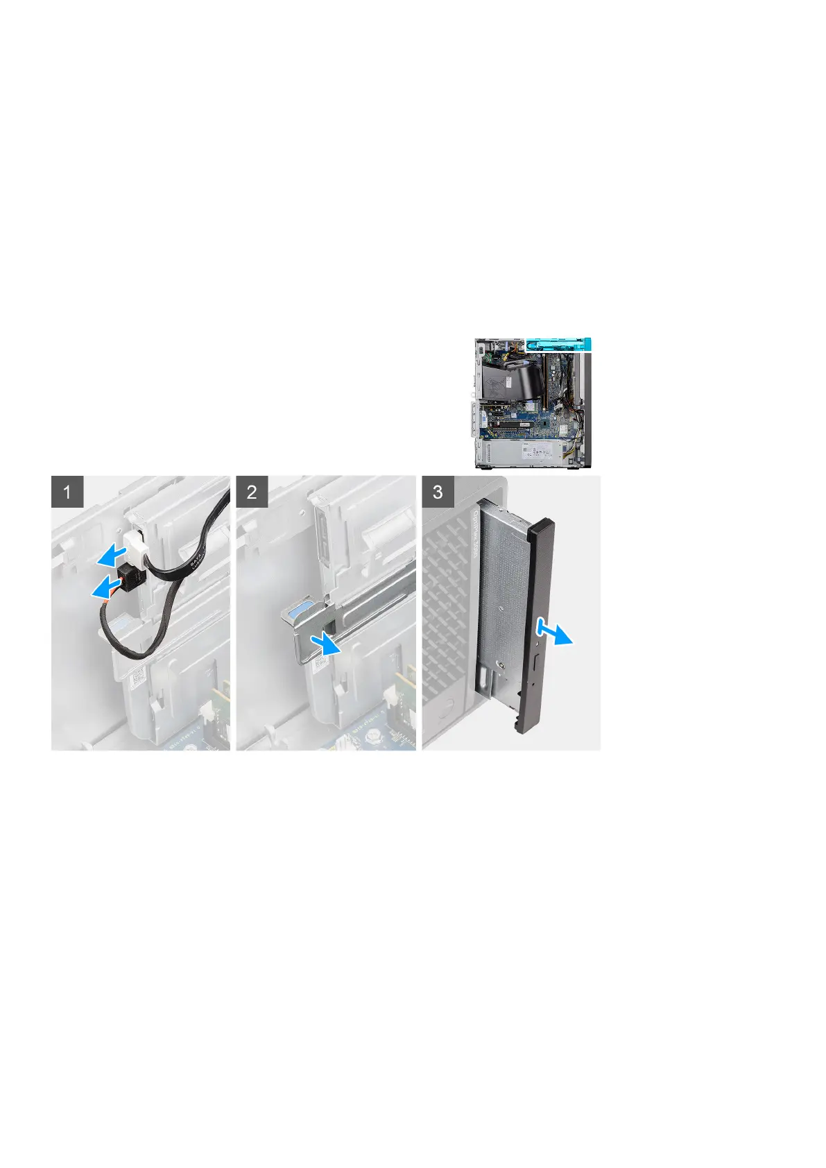 The following images indicate the location of the slim ODD and provides a visual representation of the removal procedure.