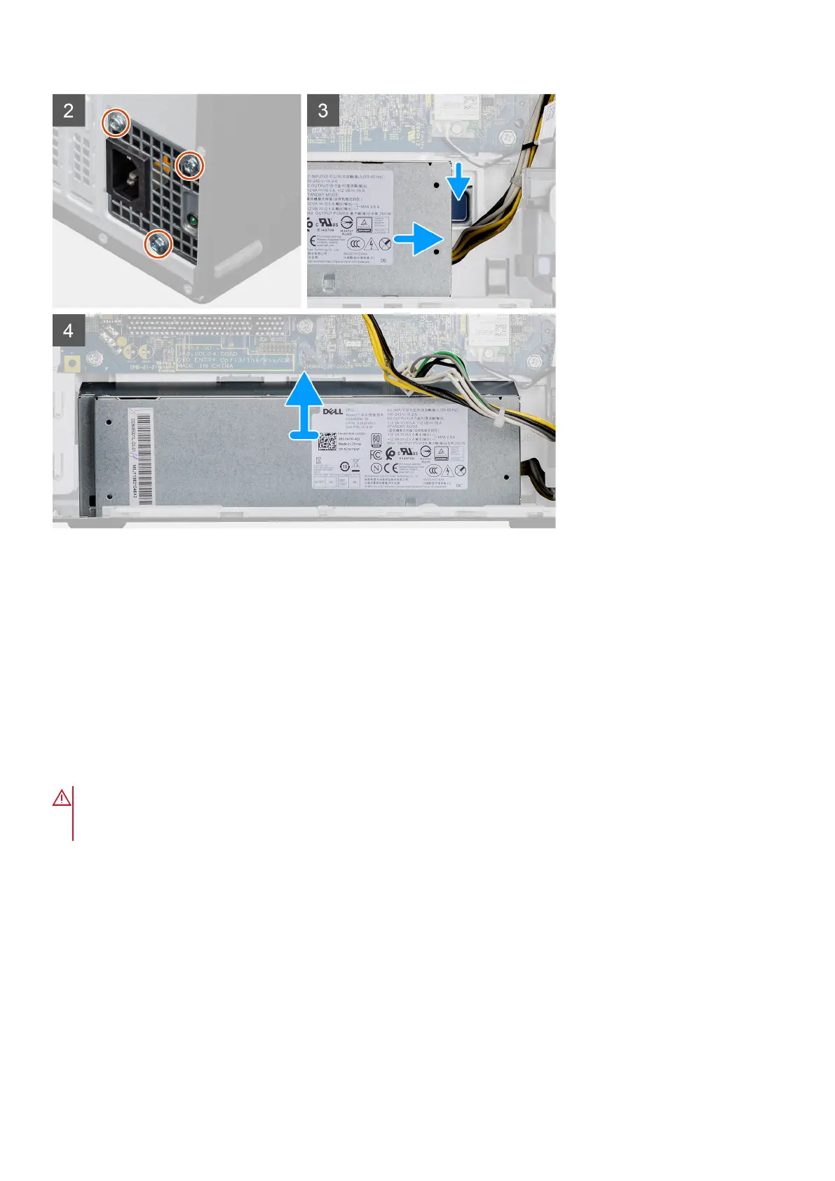 The following images indicate the location of the power-supply unit and provides a visual representation of the installation
