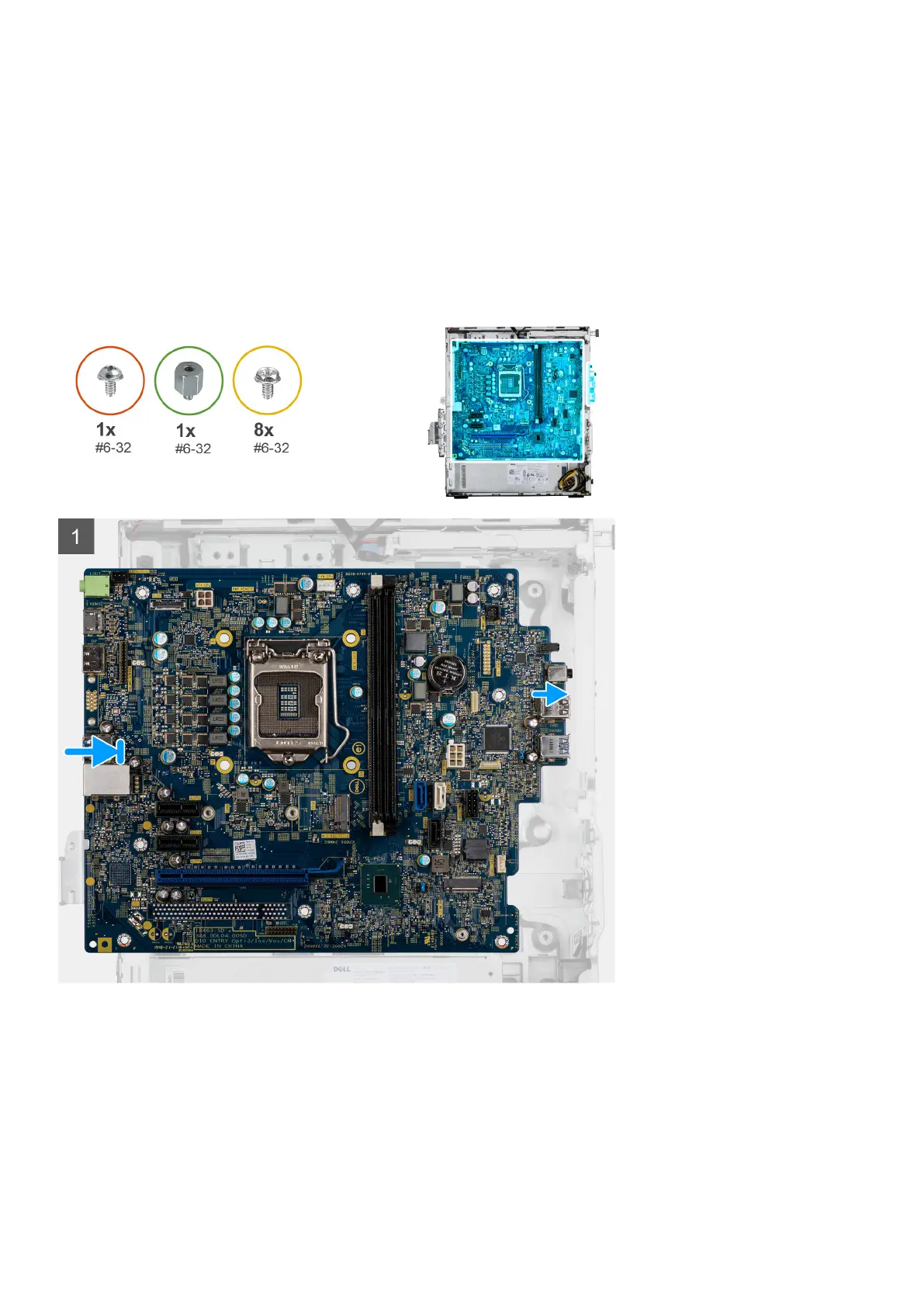 The following images indicate the location of the system board and provides a visual representation of the installation procedure.