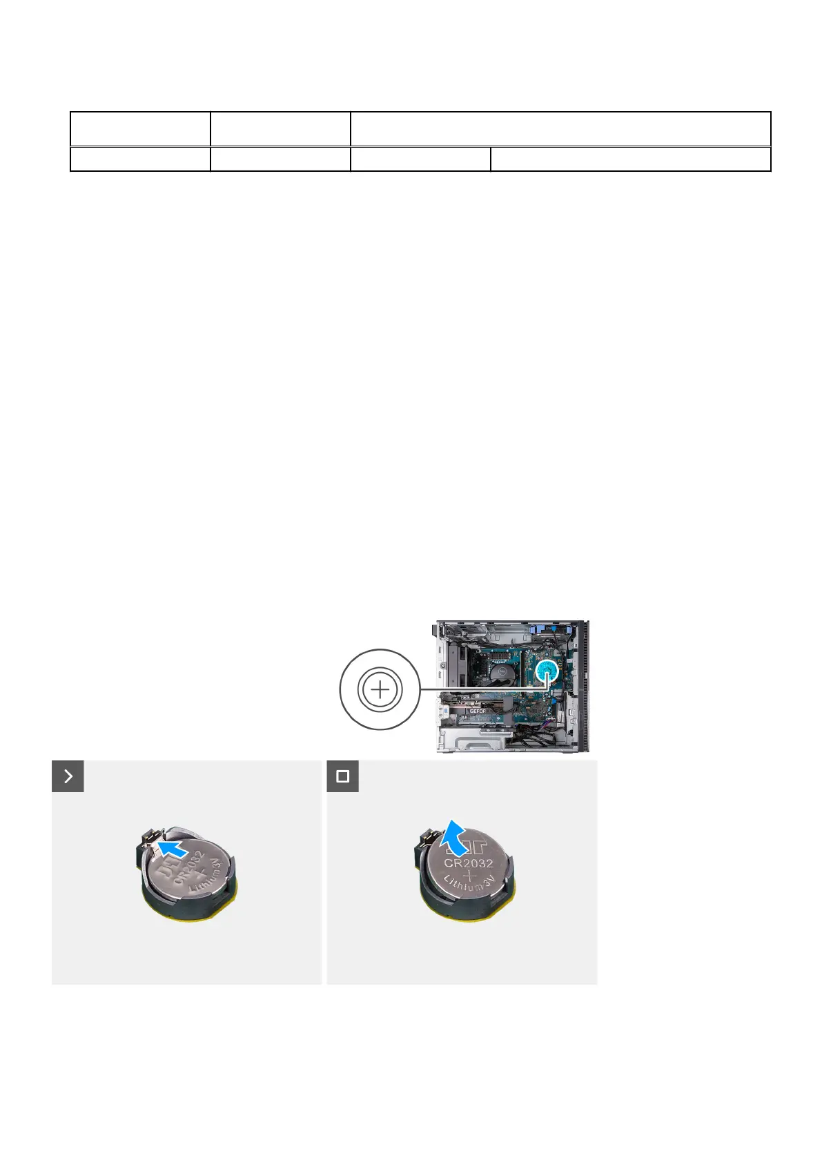 The following image(s) indicate the location of the coin-cell battery and provides a visual representation of the removal