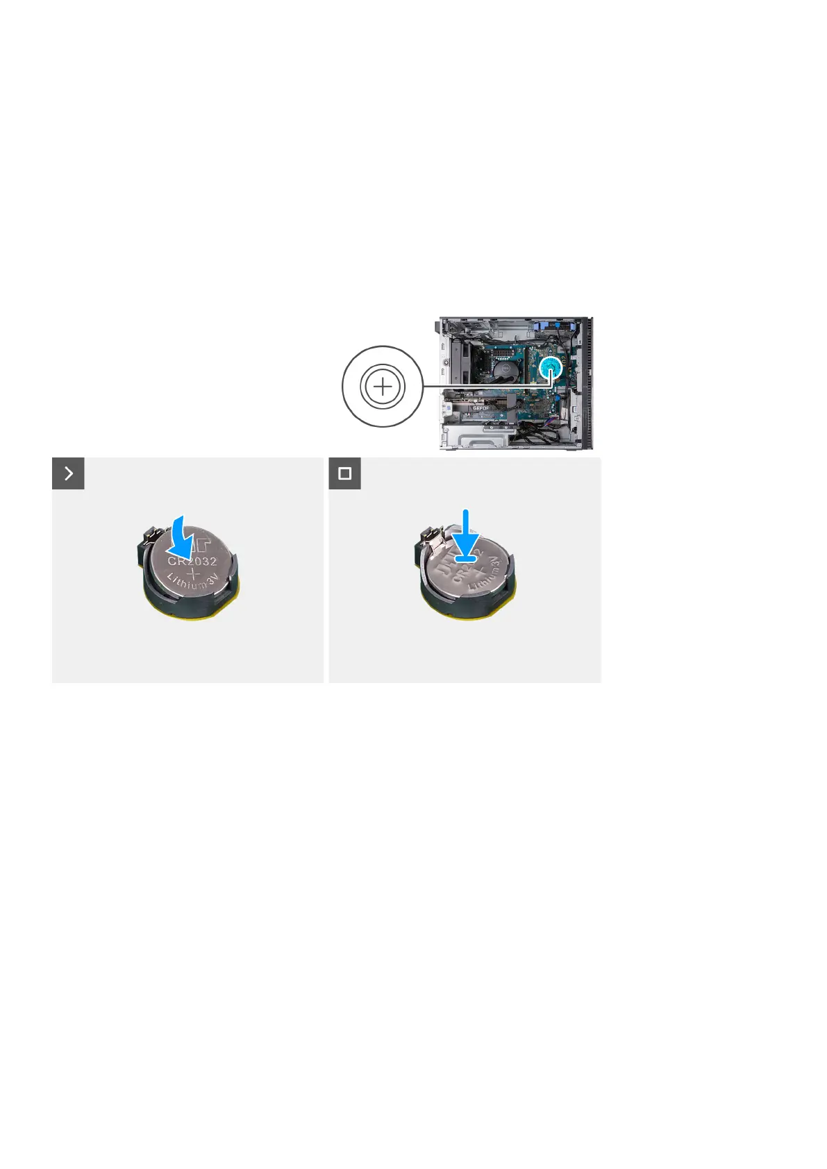 The following image(s) indicate the location of the coin-cell battery and provides a visual representation of the installation