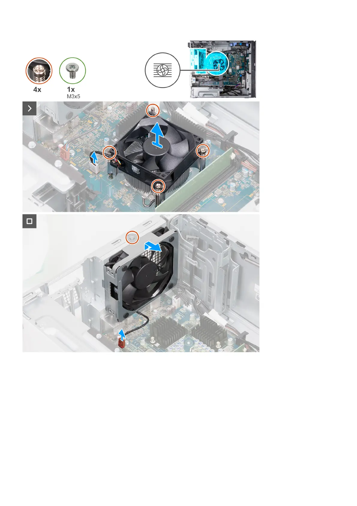 2. In sequential order (1>2>3>4), loosen the four captive screws that secure the processor fan and heat sink assembly to the