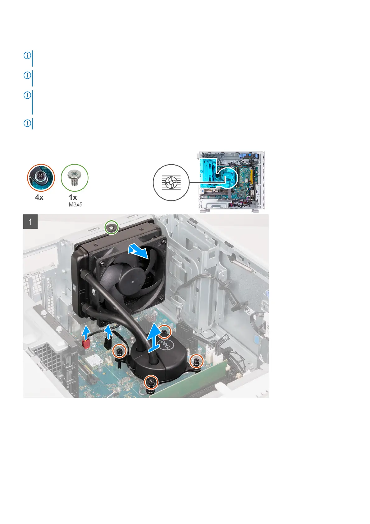 NOTE: The processor fan and heat-sink assembly (125 W, liquid cooler) consists of one radiator fan and one heat sink