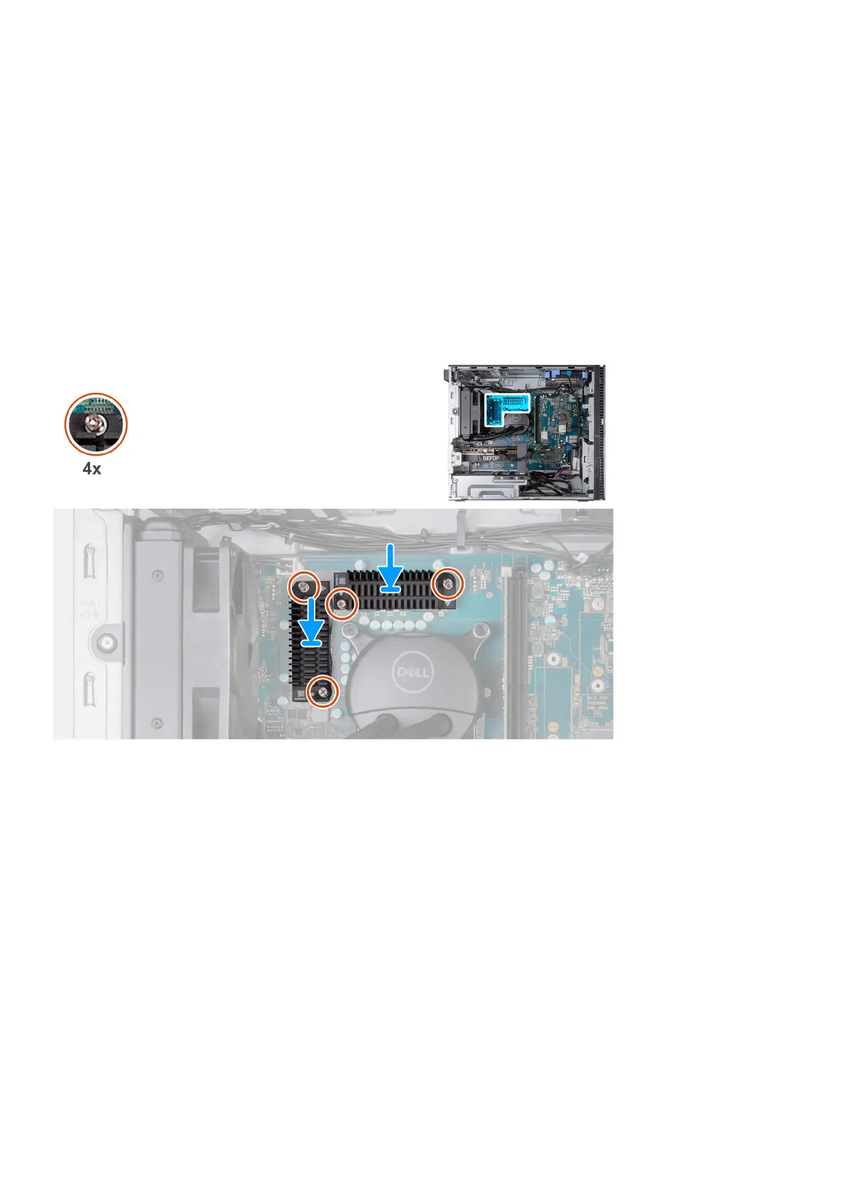 3. Tighten the four captive screws that secure the voltage-regulator heat stink to the system board.