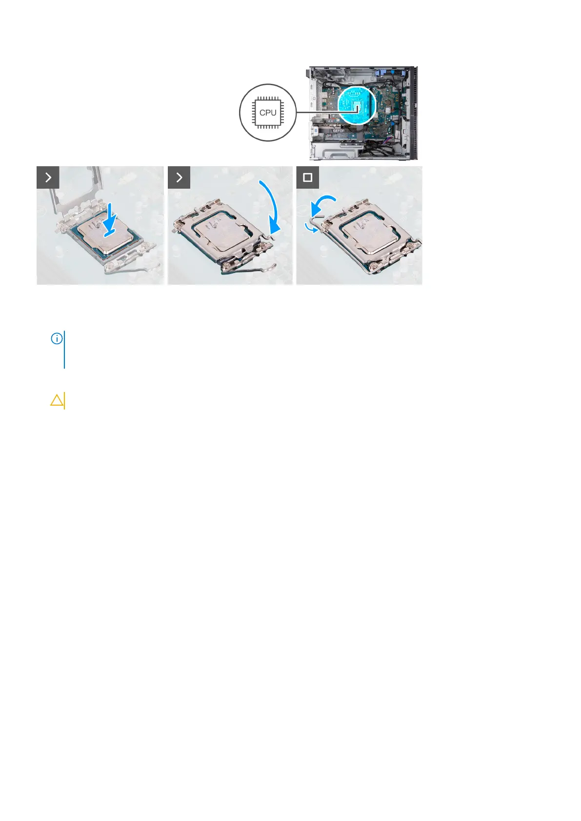 CAUTION: Ensure that the processor-cover notch is positioned underneath the alignment post.