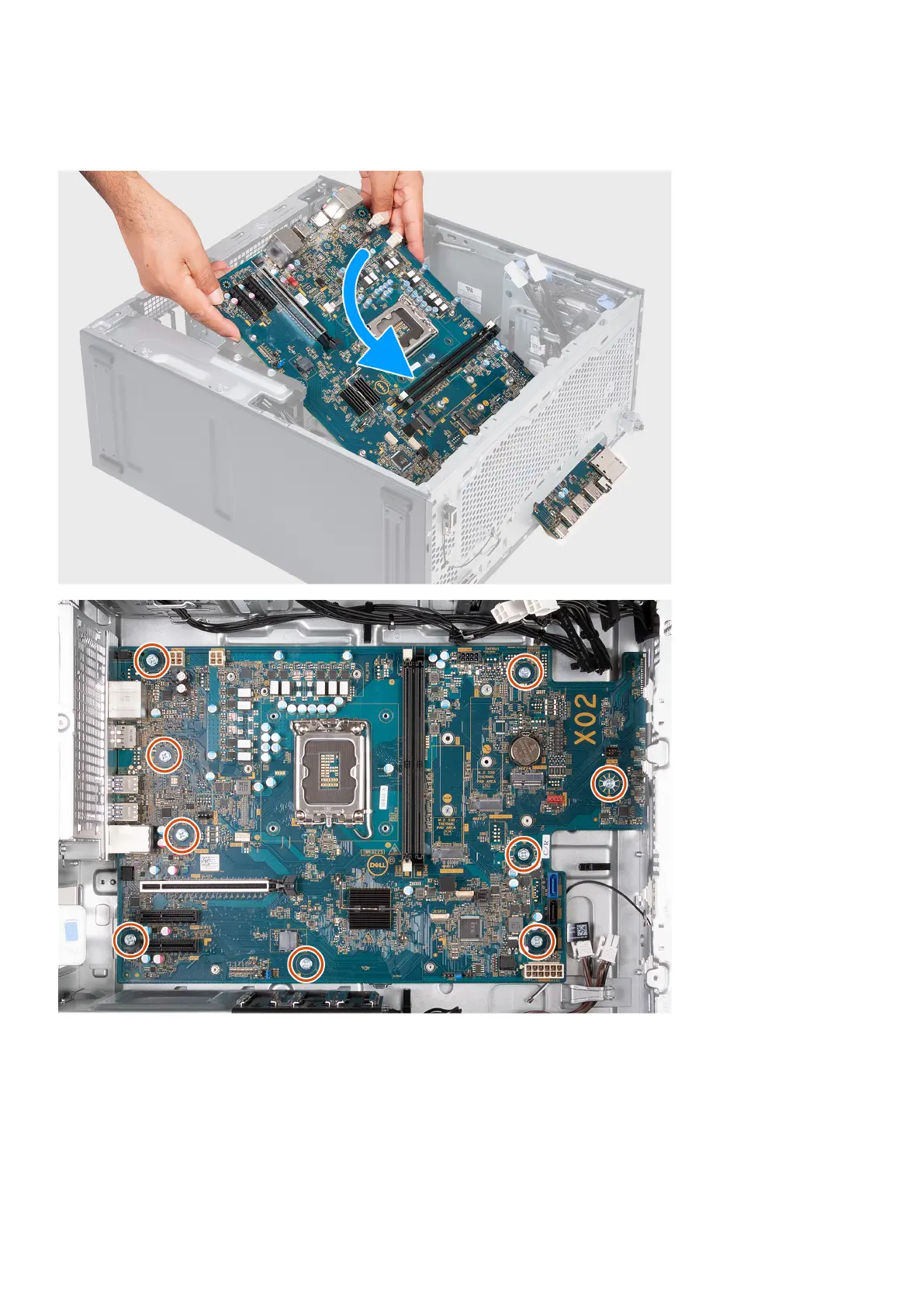 The following image(s) indicate the location of the system board and provides a visual representation of the installation