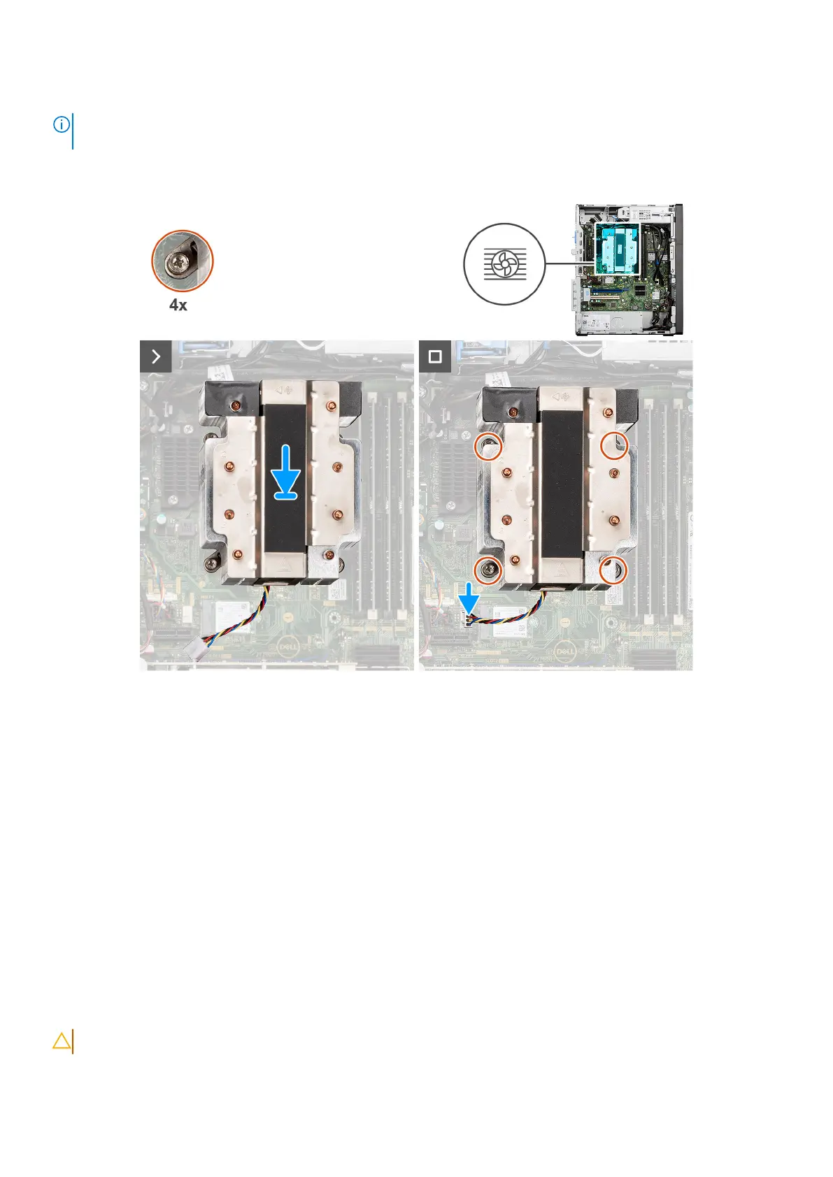 3. In the sequential order (1 > 2 > 3 > 4) etched on the heat-sink assembly, tighten the four captive screws to secure the