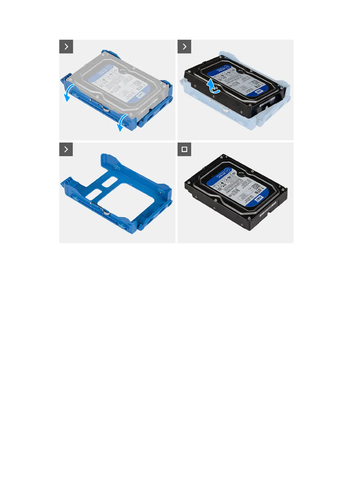10. Pry one side of the hard-drive bracket edge to release the tabs on the bracket from the slots on the 3.5-inch hard drive.