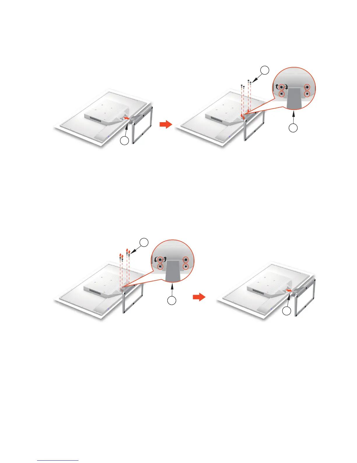 3. Replace the four screws that secure the monitor to the base. Tighten the