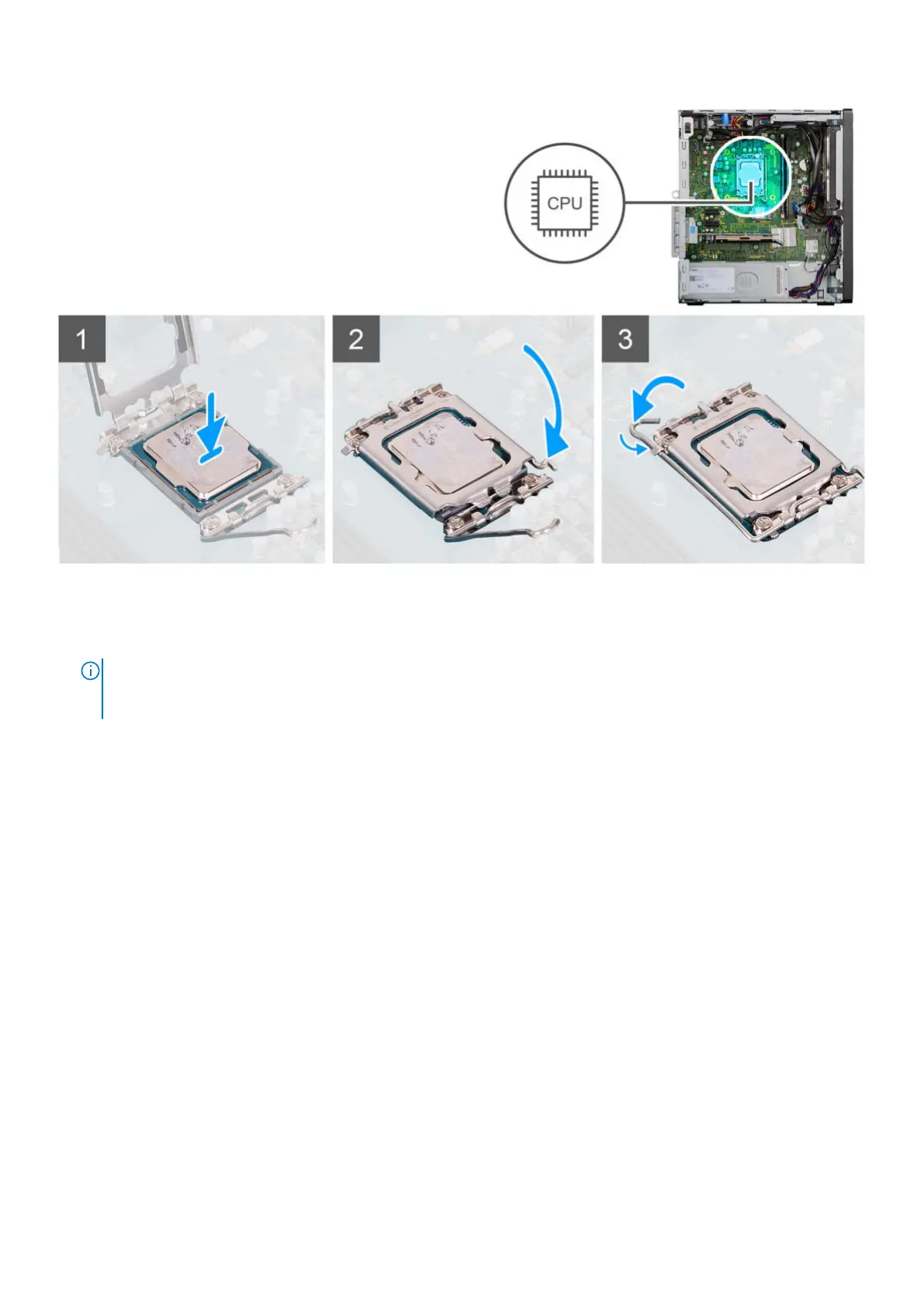 3. When the processor is fully seated in the socket, pivot the release-lever down and place it under the tab on the processor