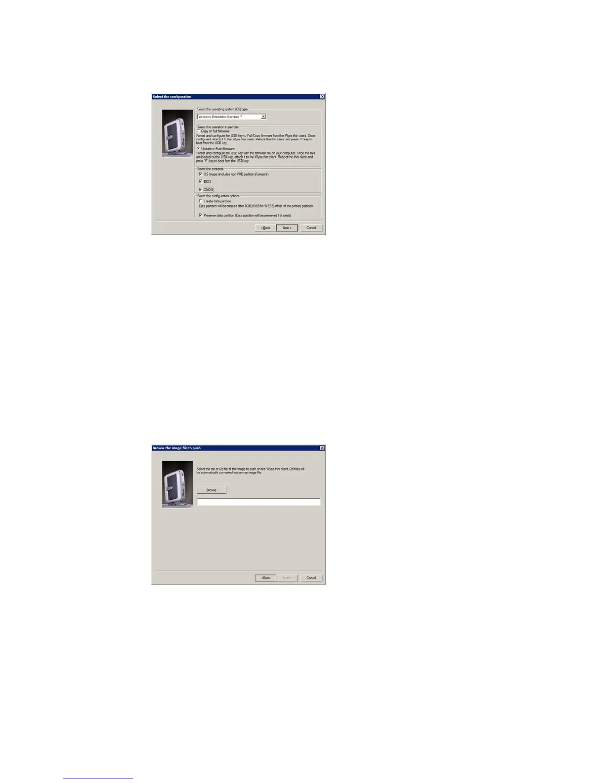 Figure 15 Update firmware options - Windows Embedded Standard 7 example