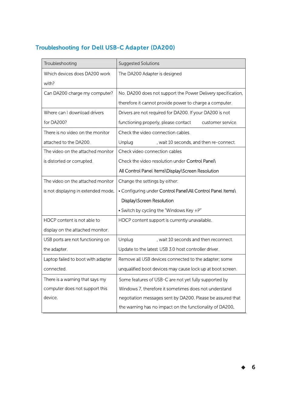 Troubleshooting for Dell USB-C Adapter (DA200)