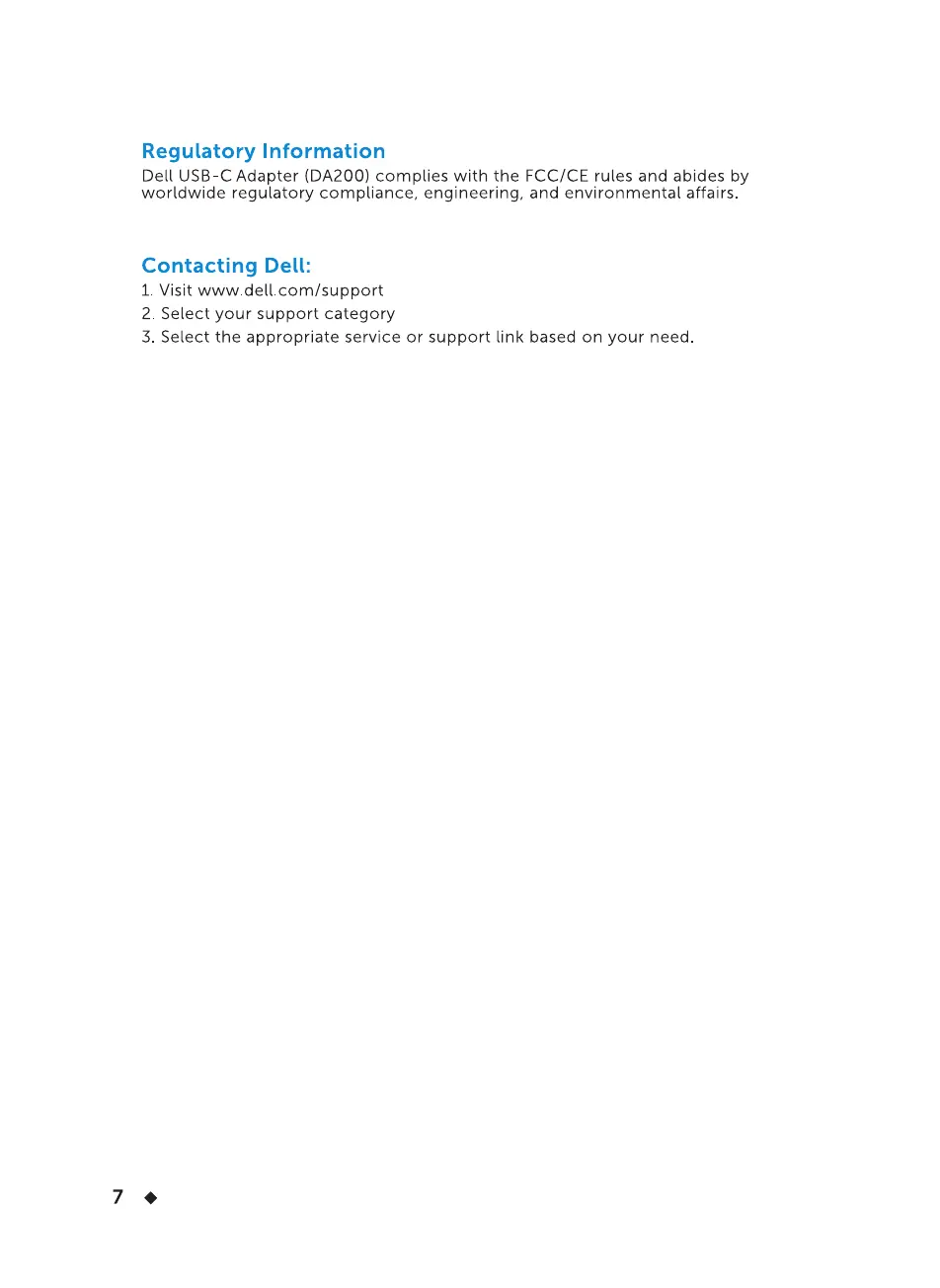 Dell USB-C Adapter (DA200) complies with the FCC/CE rules and abides by