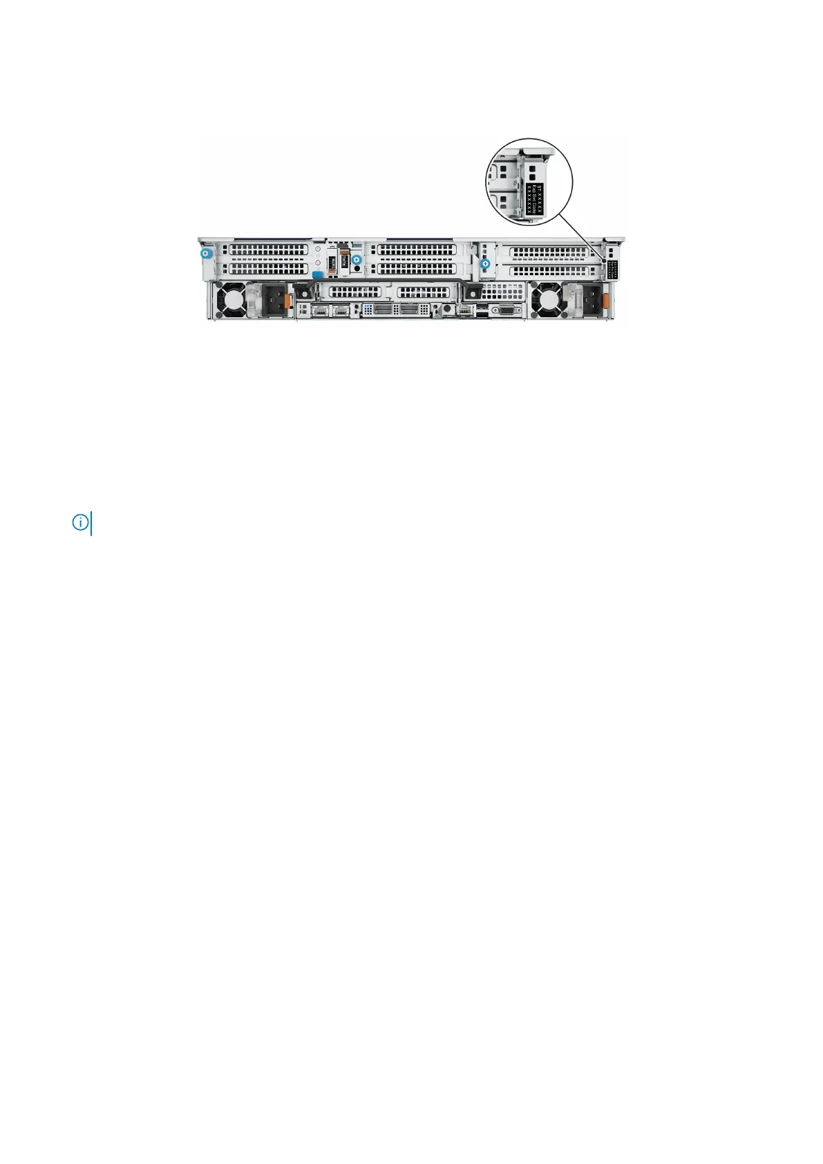 The Mini Enterprise Service Tag (MEST) label is on the rear of the system that includes the Service Tag (ST), and Express