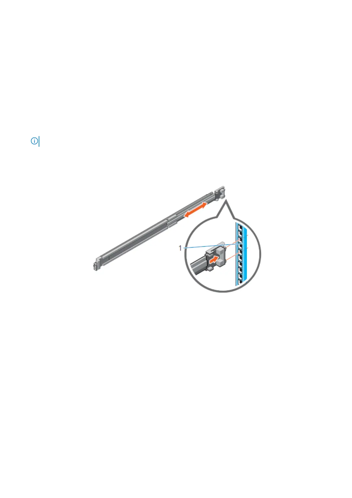 4. Push the rail straight toward the rear of the rack until the latch locks in place.