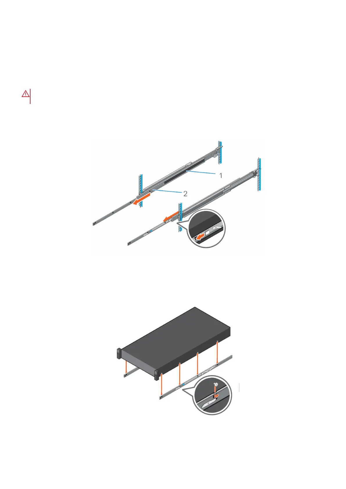 3. Attach the inner rails to the sides of the system by aligning the J-slots on the rail with the standoffs on the system and
