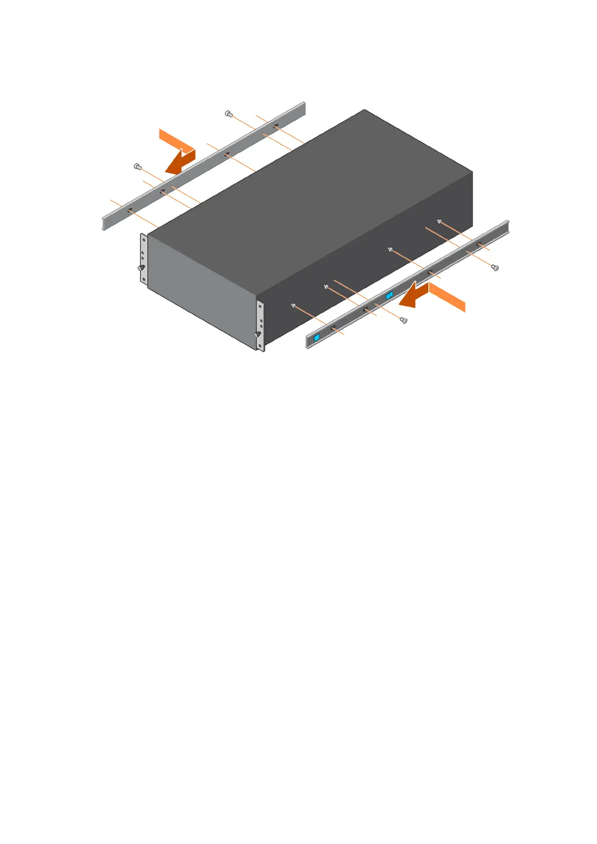 4. Secure the rails by installing two screws on each side of the enclosure.
