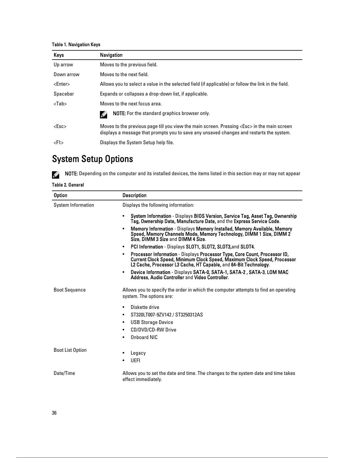 • System Information - Displays BIOS Version, Service Tag, Asset Tag, Ownership