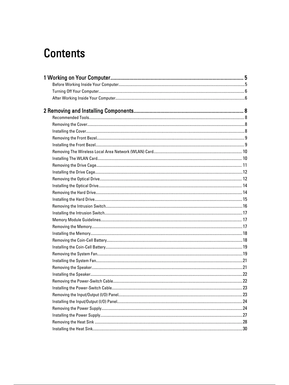 2 Removing and Installing Components..................................................................................... 8