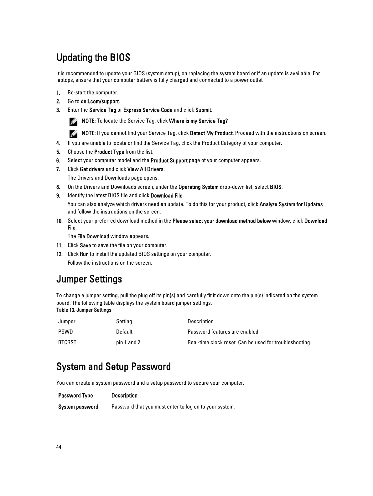 System and Setup Password