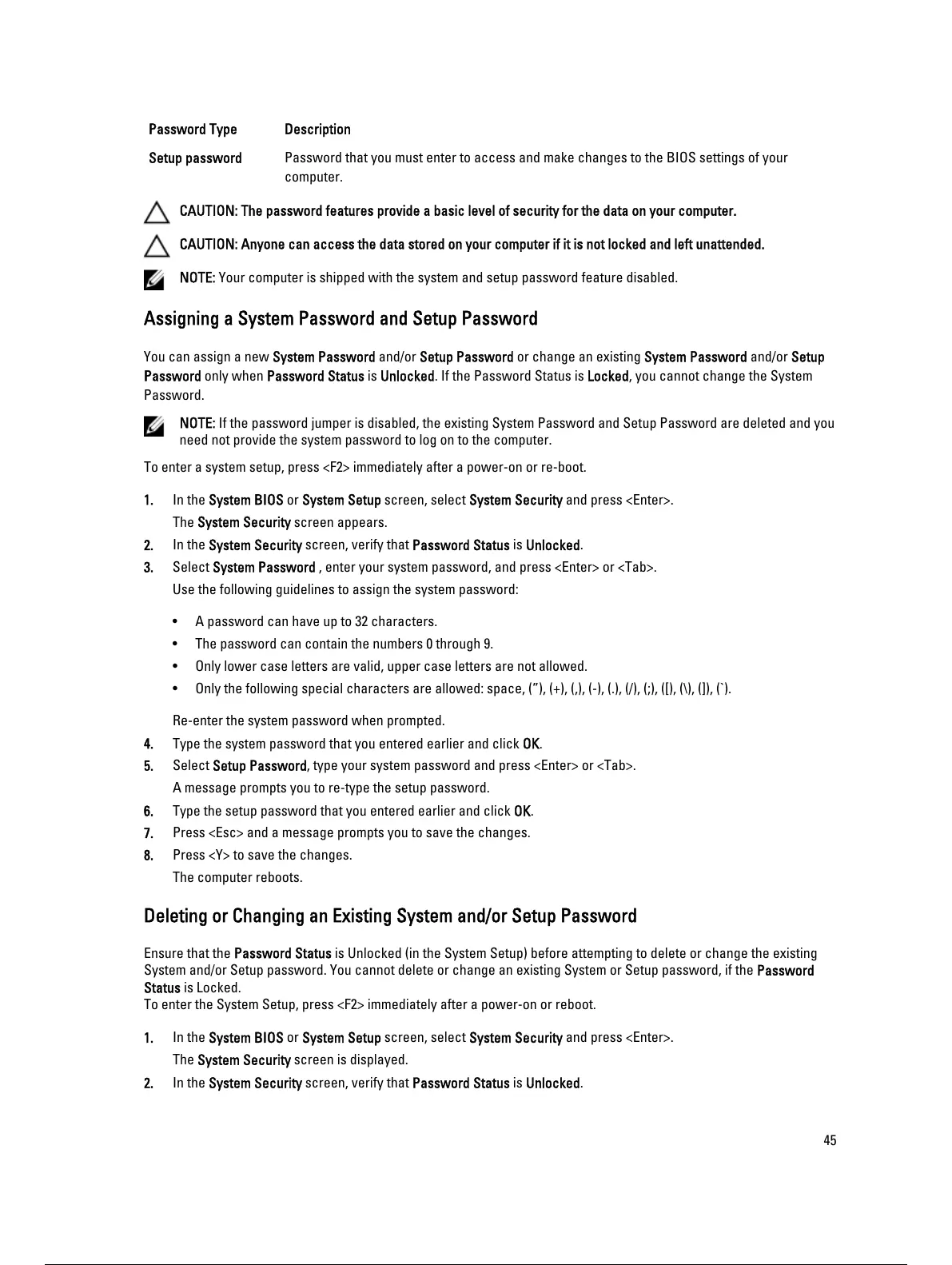 System and/or Setup password. You cannot delete or change an existing System or Setup password, if the Password