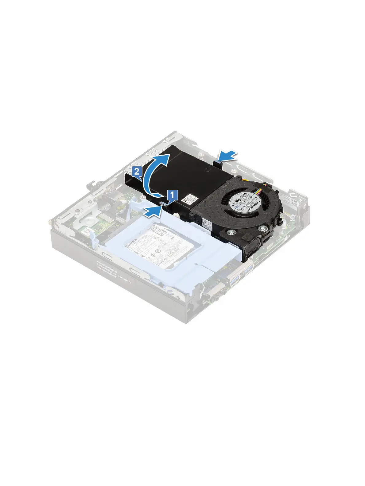 a Press the blue tabs on both sides of the heat sink blower [1].