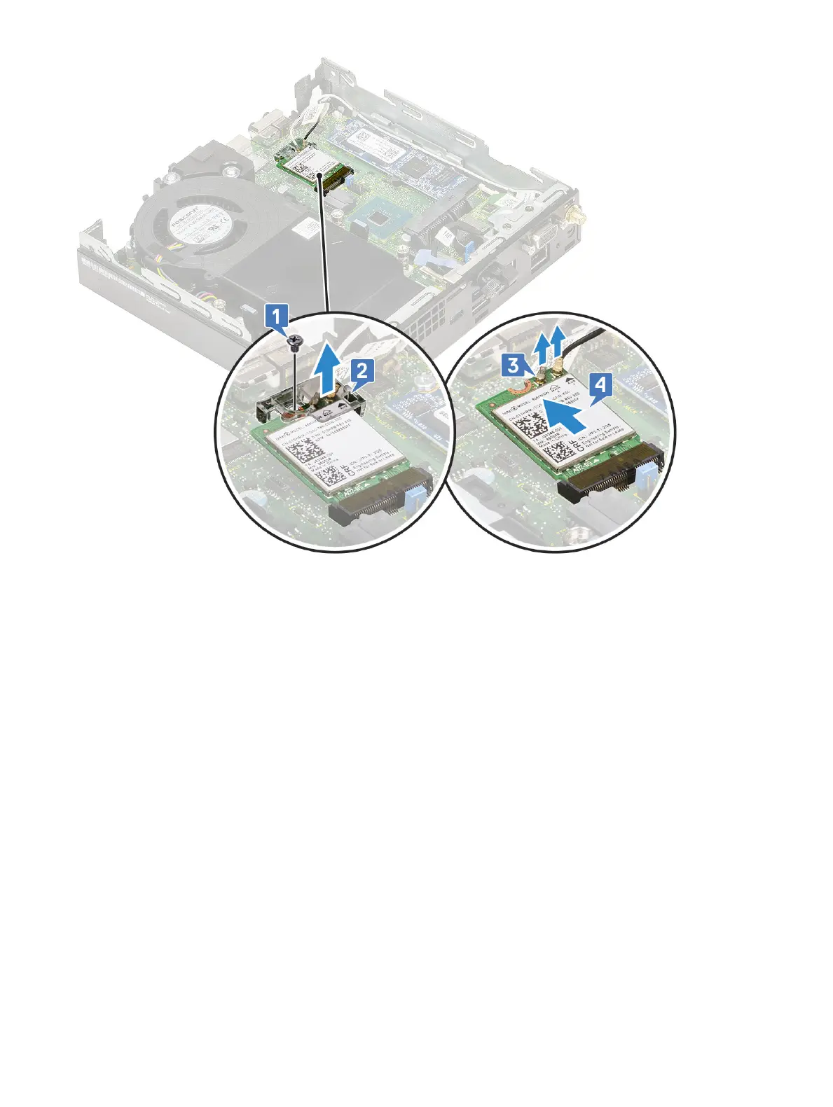 d Replace the single (M2X3.5) screw to secure the plastic tab to the WLAN card [4].