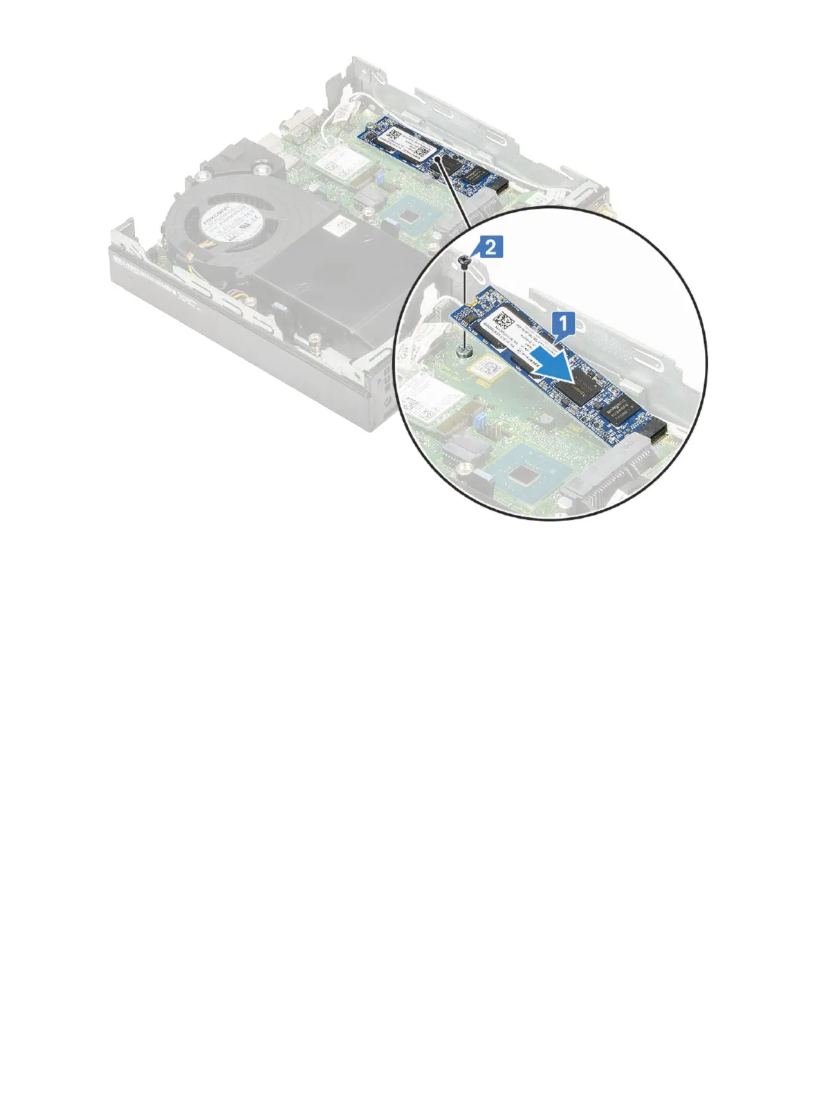 b Remove the four screws that secure the optional card to the system chassis [2, 3].