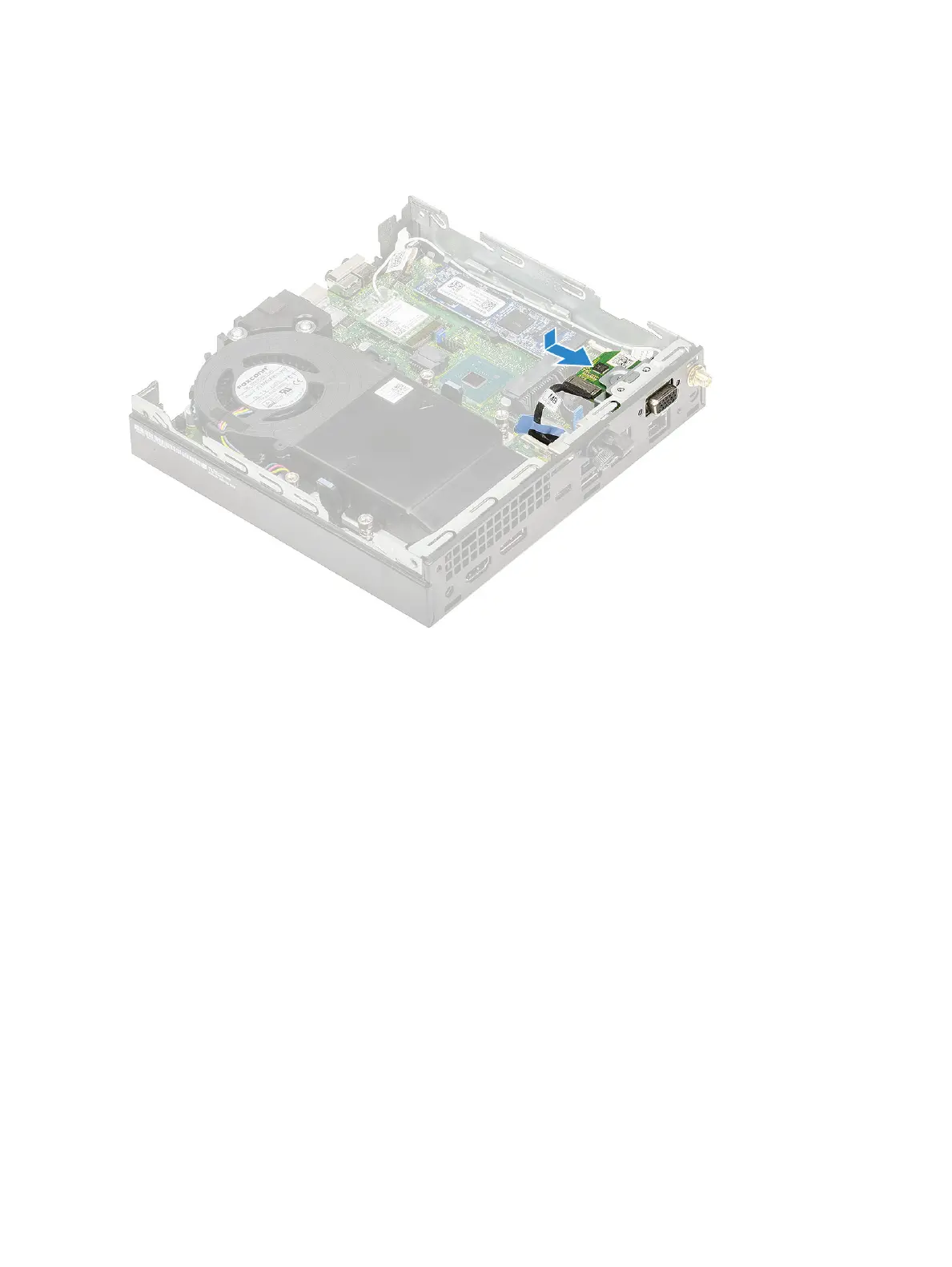 c Connect the optional card cable to the connector in the system board [3].