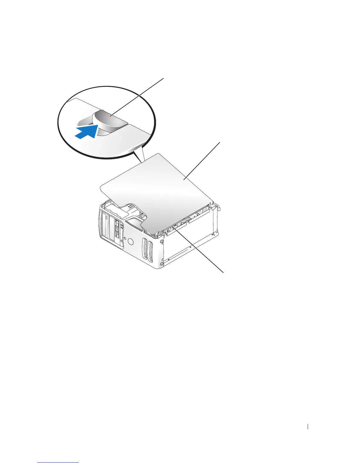 Grip the sides of the computer cover and pivot the cover up, using the bottom hinges as