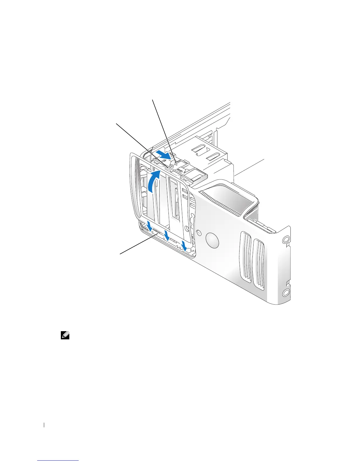 NOTE: This sliding plate secures and releases the drive panel and helps to secure the drives.