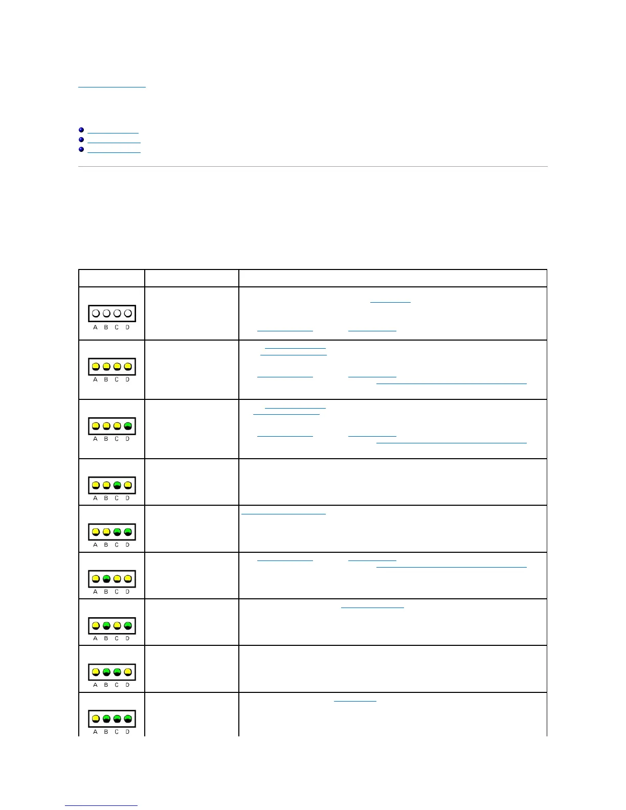 yellow, green, or off as shown in the following table. When the computer is turned on or restarted and it is functioning normally, the lights flash during POST.