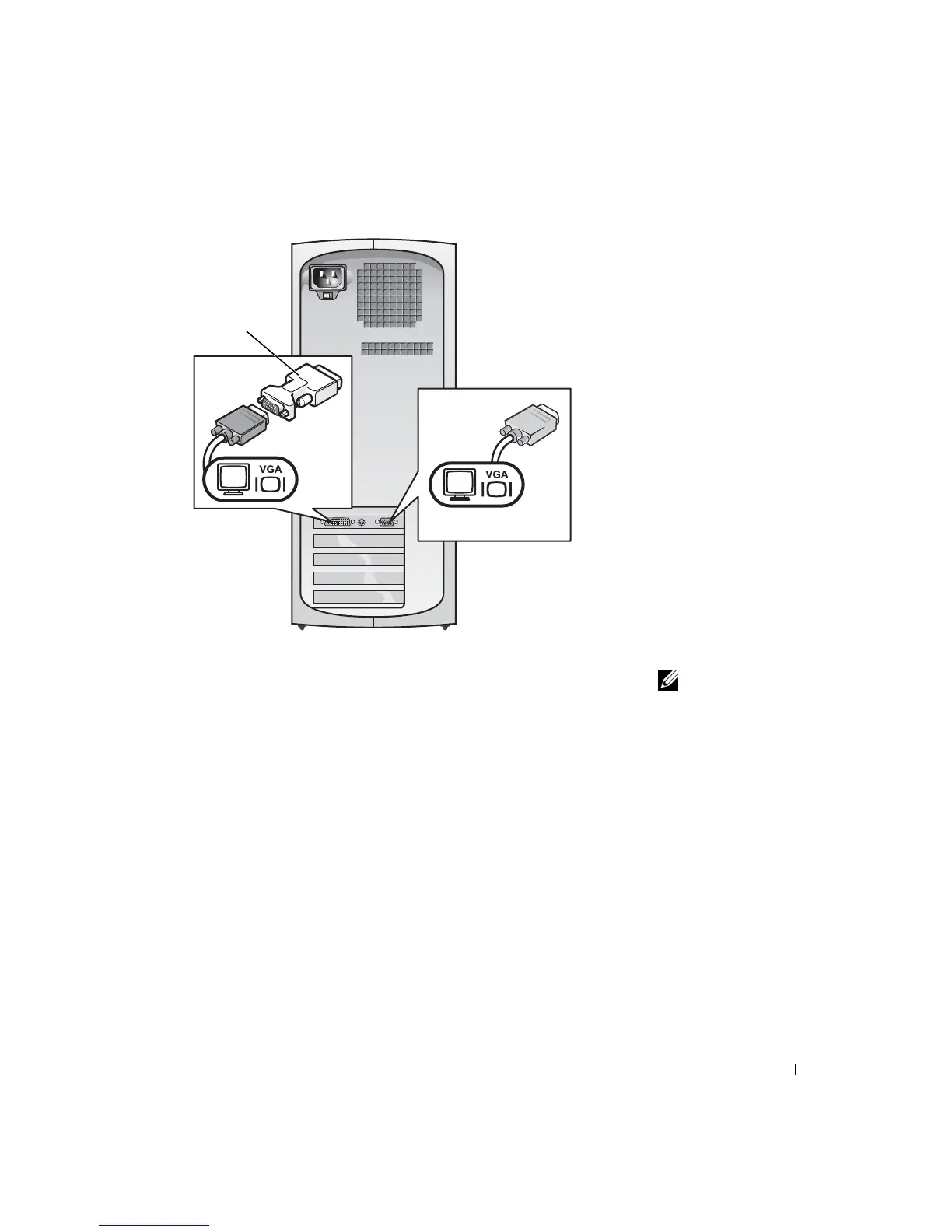 a Connect the VGA connector on the monitor to the VGA (blue)