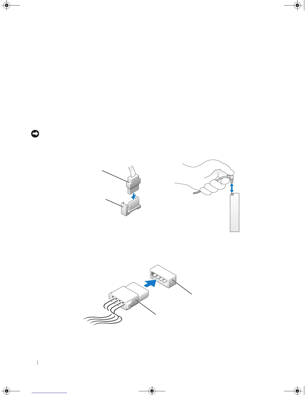 When you install a drive, you connect two cables—a DC power cable and a data cable—to the back of