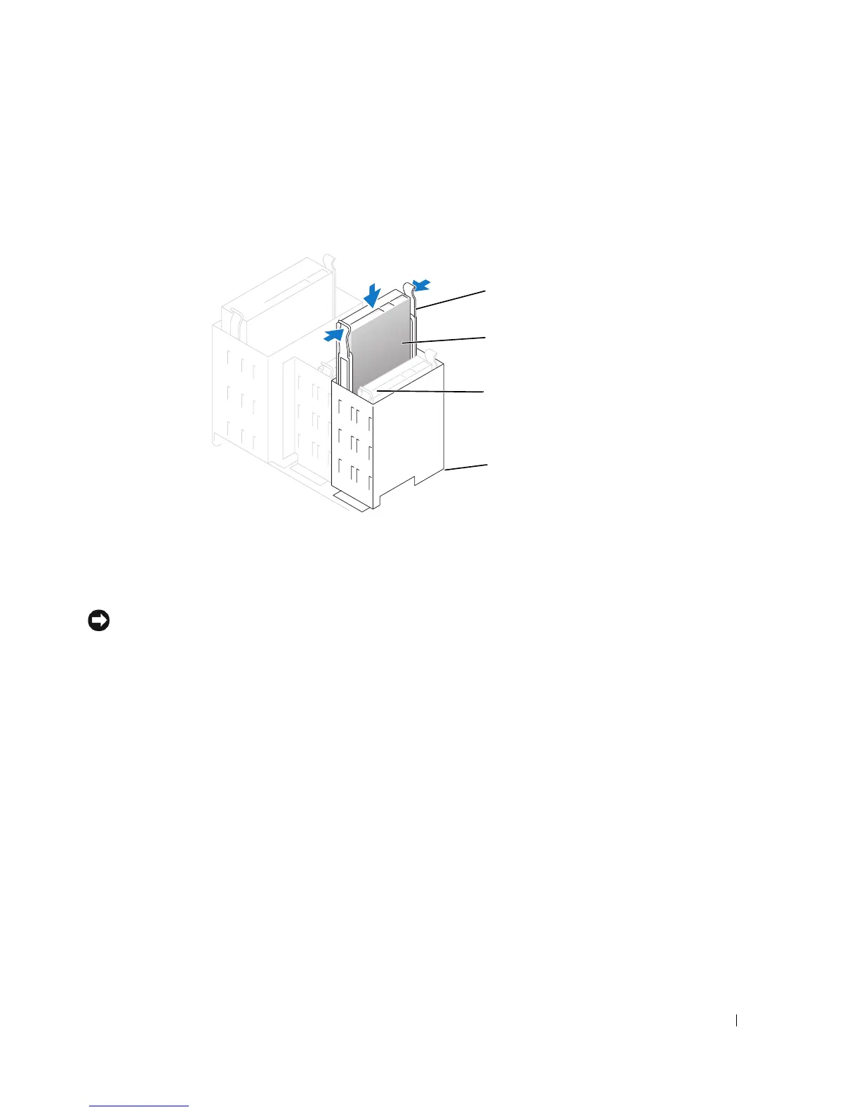 Gently slide the first hard drive into the lower bay until you hear a click.