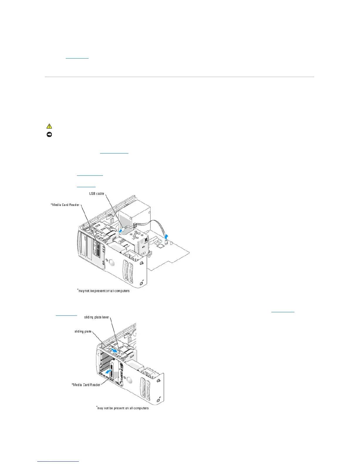 5. Disconnect the USB cable on the back of the Media Card Reader from the front panel USB connector on the system board (see "System Board