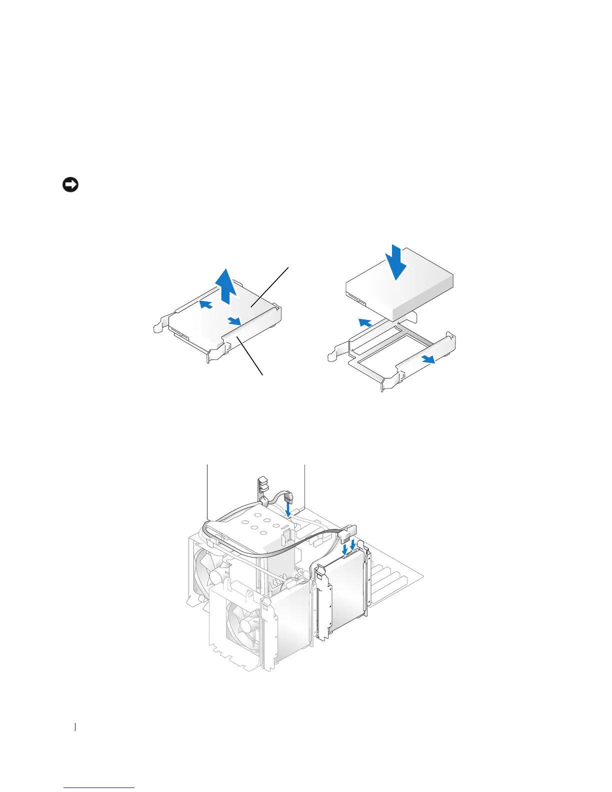 NOTICE: Do not install any drive into the lower hard-drive bay until you have removed the hard drive bracket from