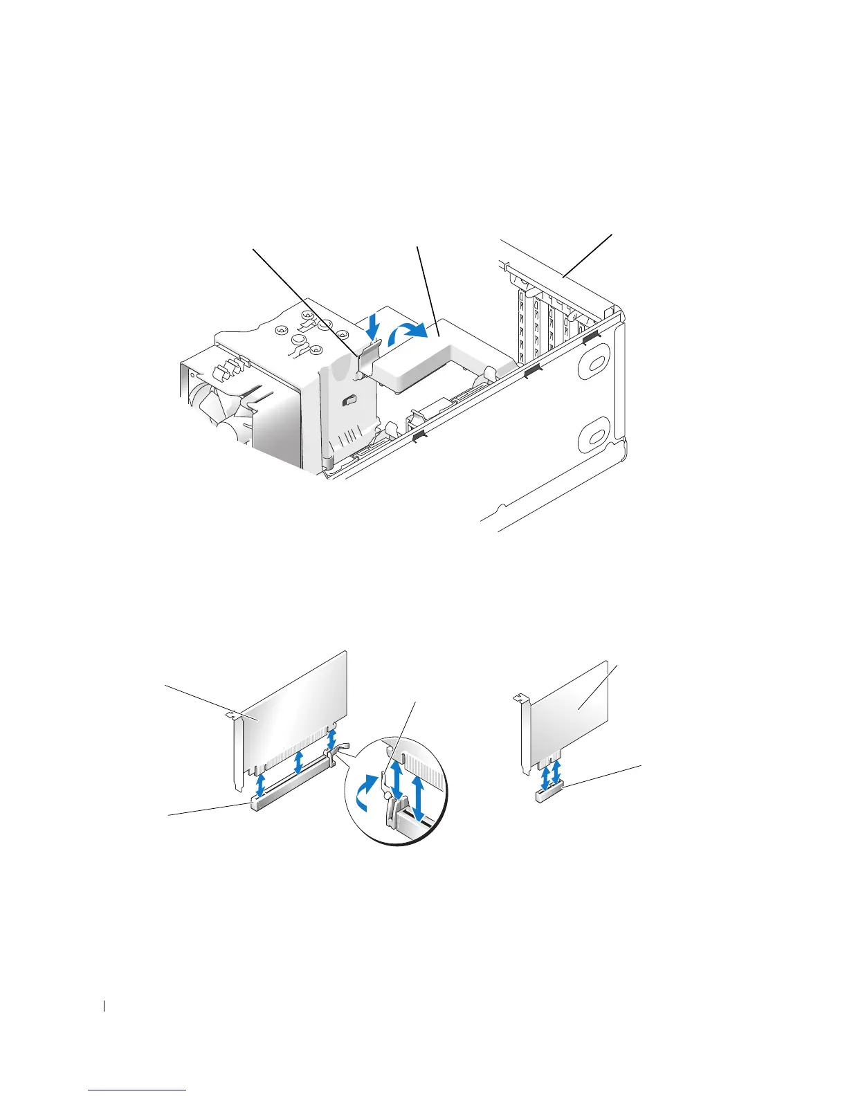 1 PCI Express x16 card slot 2 PCI Express x16 card 3 securing tab