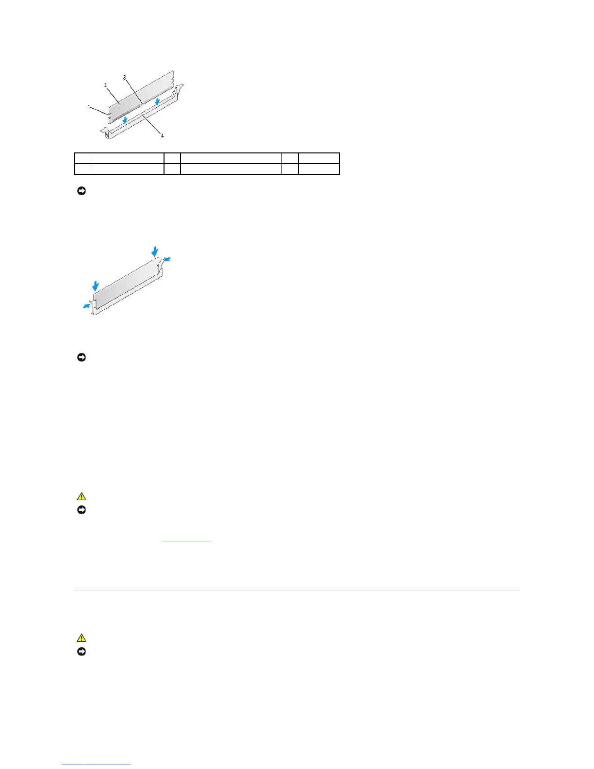 2. Press out the securing clip at each end of the memory module connector.