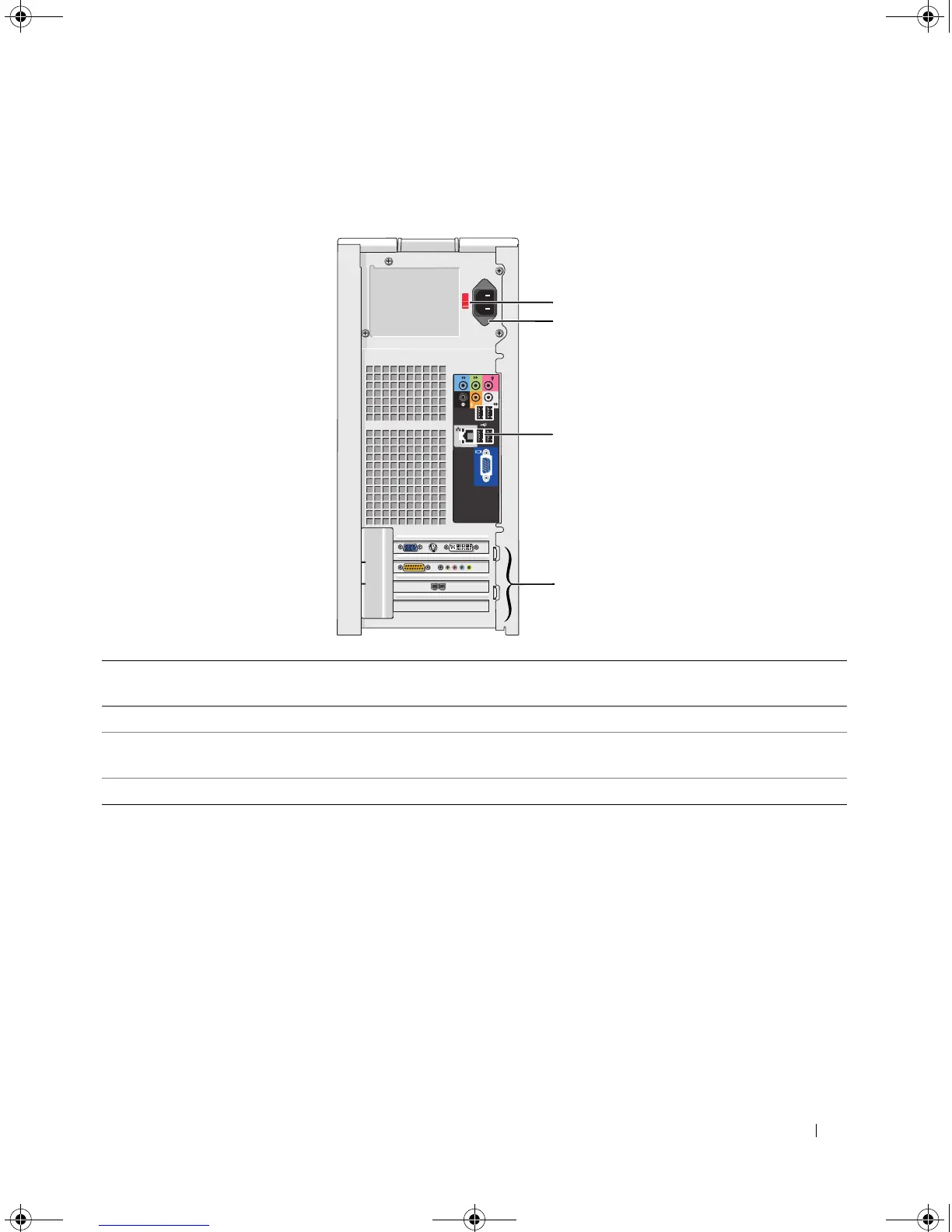 3 back panel connectors Plug USB, audio, and other devices into the appropriate connector.