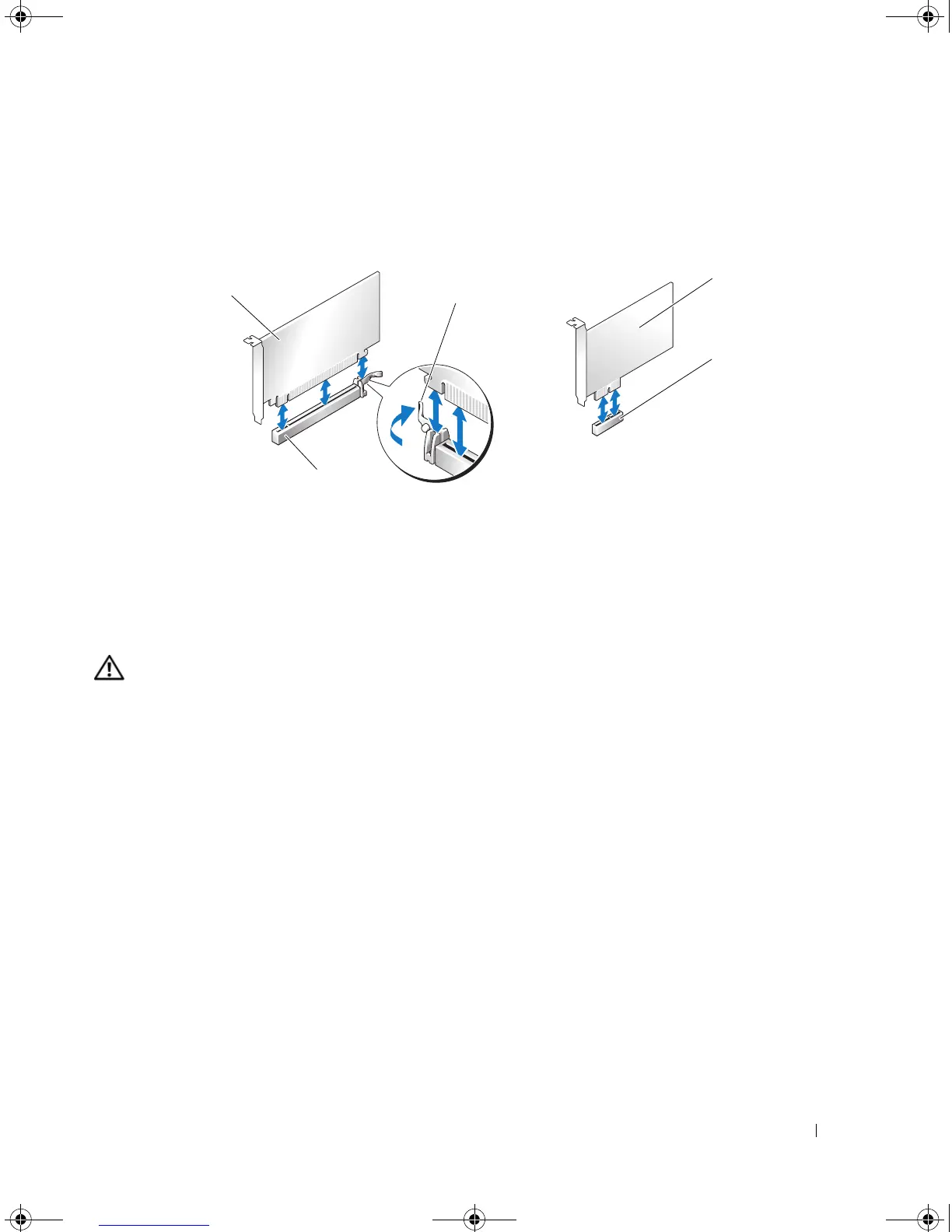 1 PCI Express x16 card 2 securing tab 3 PCI Express x1 card