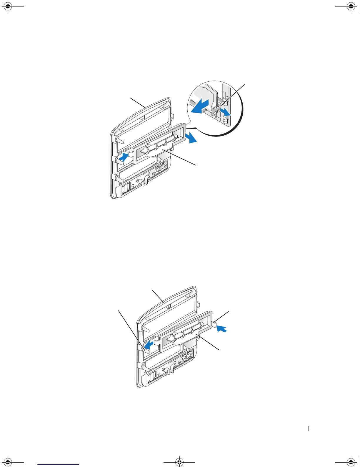 Without releasing the tab, pivot the drive-panel insert out and away from the drive panel.