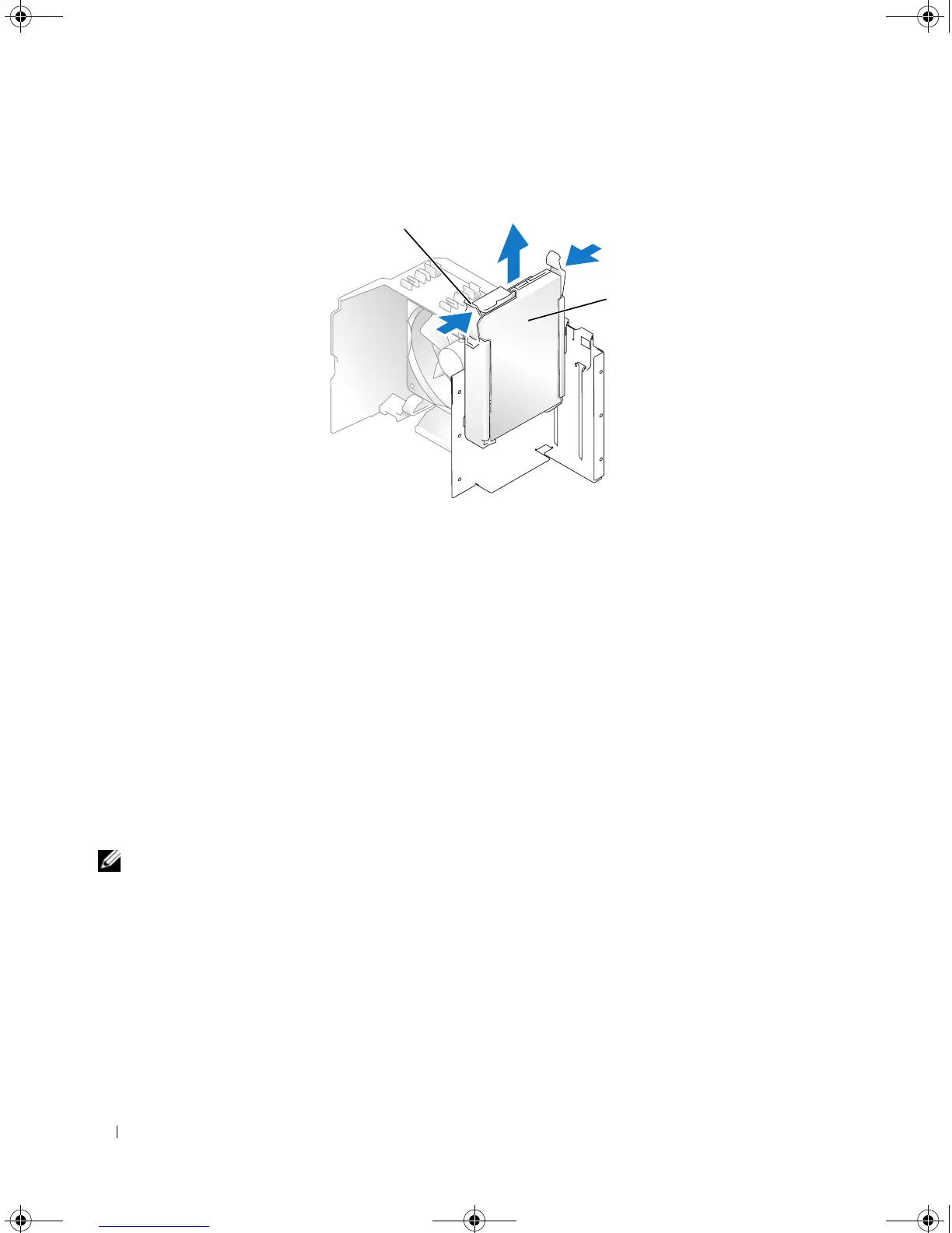 Press in on the blue tabs on each side of the drive and slide the drive up and out of the computer.